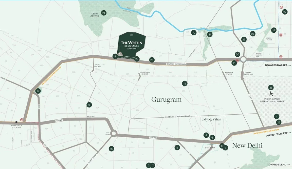 Whiteland Westin Residences, located in Sector 103, Gurugram, is a new ultra-luxury residential development right on the Dwarka Expressway. Offering spacious 3 & 4 BHK apartments with study rooms, modern bathrooms, and utility areas, this high-rise community is designed for comfortable family living. Enjoy breathtaking landscaped views and a premium lifestyle with world-class amenities, including a kids' play area, jogging park, sports complex, and water features. The residences, branded by Marriott International, offer custom finishes and exceptional service, providing a lifestyle that mirrors the luxury and hospitality of Marriott hotels. Each home comes with air-conditioning, a modular kitchen, and elegant foreign marble flooring.